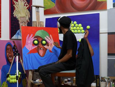 LOVE ALL is a sustainability-driven contemporary art project by Kabelo Moraloki that transforms discarded tennis balls into hybrid portrait paintings and sculptural artworks. The tennis balls, sourced from community partner Amazeballs, are materials that have already served disadvantaged children in township communities in Cape Town through play.